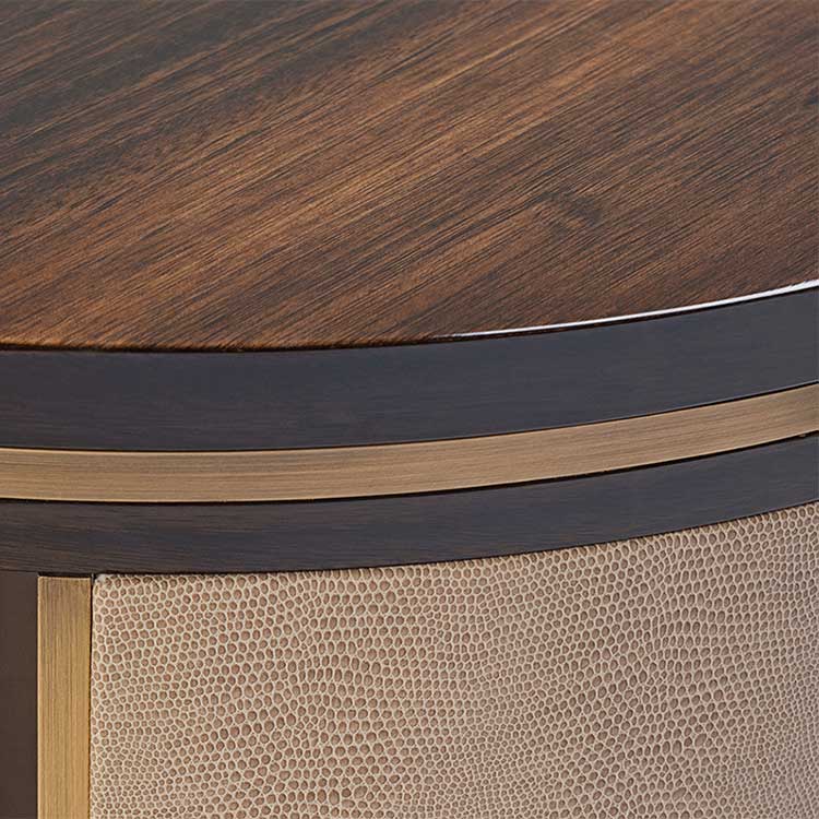 | Material | Top and bottom: wood veneer; gloss close pore dtails: metal brushed brass sides in wood veneer |